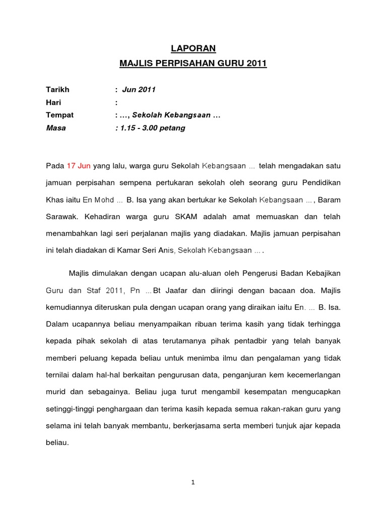 Melanjutkan pelajaran ke sebuah pusat pengajian tinggiAnda sebagai ketua kelas diminta menyampaikan ucapan dalam suatu majlis perpisahan untuknya. Matahari mengajar kita bahawa pada setiap pertemuan yang hangat terdapat sebuah perpisahan yang. Teks ucapan majlis perpisahan persaraan Majlis perpisahan persaraan saya dengan rasminya telah dibuat oleh pihak Sekolah Menengah Kebangsaan Sultan Ibrahin Satu 17000 Pasir Mas Kelantan pada 28 Februari 2013 Khamis bertempat di Dewan Besar sekolah yang bermula pada jam 1200 tengah hari hingga jam 200.